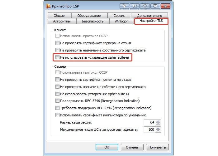 Аксар вақт хатогӣ на танҳо ҳангоми пайваст шудан ба сервери мустақили соҳибкори инфиродӣ, балки ба сервери идораи хусусии шахси ҳуқуқӣ рух медиҳад. Сабаби "Санҷиши пайвастшавӣ ба бехатарӣ" метавонад танзимоти кредитии CryptoPro бошад. Дар ин ҷо шумо бояд ба ҷадвали "TLS Танзимотҳо" равед ва аломати санҷишро аз "Қуттии санҷишии қаблӣ" истифода баред.